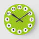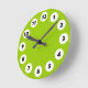 A stylish clock face with the numbers placed inside circular colour spots in each hour position. Also available in other colours.