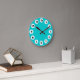 A stylish clock face with the numbers placed inside circular colour spots in each hour position. Also available in other colours.