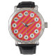 A stylish clock face with the numbers placed inside circular colour spots in each hour position. Also available in other colours.