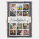Share your beautiful memories with this amazing throw blanket featuring 12 square instagram style photo spaces with a white photo collage grid and your personalised monogram and family name over a white band. The background dark navy colour can be changed by clicking customise it and changing background colour.