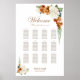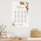 Help your guests find their table with this burnt orange and white rose floral wedding seating chart. It is suitable for a wedding with 12 tables and 120 guests.