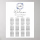 A simple chic monogram watercolor floral purple and blue wedding seating chart. Modern boho wedding seating chart editable, customisable, calligraphy handwritten font, simple, elegant.