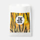 Personalised birthday Tiger favour bags are the perfect way to thank your party guests for joining your festivities. Part of a fun orange with black cow art party supply set of 12, essential for your wild themed party. Party on!