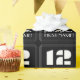This 1920s-1930s style inspired classic birthday wrapping paper design features a large art deco style inspired number "12", the message "Happy 12th Birthday,", an editable name, and a border pattern consisting of thin lines. Wrapping paper like this might be used when wrapping gifts being given to somebody in celebration of their 12th birthday. [~Z0000485]