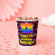 This cheerful and colorful birthday paper cup design features a large number “12” having a rainbow spectrum gradient inspired pattern. It also features the message “Happy 12th Birthday,”, and a personalized name. The background features a pattern of pink, purple, and red heart shapes. Upbeat, joyful paper cups like this might be fun to have at a birthday party/celebration being held to celebrate somebody’s 12th birthday. [~Z0000548]