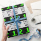 This fun and geeky birthday wrapping paper design features a large green retro computer gaming style number "12" on a black coloured background. It also features the birthday greeting message "Happy 12th Birthday,", and a customisable name. Birthday themed wrapping paper like this might be a fun way to wrap a gift or present being given to celebrate somebody’s twelfth birthday. [~Z0000403]