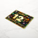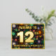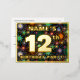 The front of this bold twelfth birthday party/celebration foil invitation postcard design features an editable name, a large number “12th”, the message “BIRTHDAY PARTY!”, and a border. The background of the front features an exciting, multicolored bursting celebratory fireworks-inspired pattern. The back features personalised details about the event, such as the date, time, location, and any other important information. Customisable invitations like these might be a fun way to let guests/attendees know about a birthday party being held to celebrate somebody’s 12th birthday. [~Z0000609]