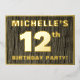 The front of this bold twelfth birthday celebration foil invitation card features a custom name, a large number “12th”, the message “BIRTHDAY PARTY!”, and a border, all in foil. There is a rustic, yet elegant, faux wood grain look inspired pattern for the background of the front. The back features personalized details about the event, such as the date, time, venue/place, and any other important information. Customizable invitations like these might be used to invite attendees to a birthday gathering being held to celebrate somebody’s 12th birthday. [~Z0000598]