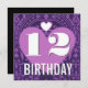 12th Birthday Party Hearts Purple Damask V20 Invitation
