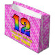 12th Birthday: Pink Stripes & Hearts, Rainbow # 12 Large Gift Bag