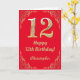 12th Birthday Red and Gold Glitter Frame Card