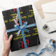 This geeky and silly birthday themed wrapping paper design features a large number "12" with a red seven segment digital display inspired look, along with the message "Happy 12th Birthday," and an editable name in nerdy retro style yellow text, on a black coloured background. Fun wrapping paper like this might be used when wrapping presents being given to somebody in celebration of their 12th birthday. [~Z0000387]