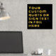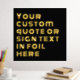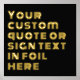 This real gold foil poster art features a text template in modern typography that easily allows you to add your own custom phrase, quote, saying, text, birthday wish, proverb, Bible verse, motivational quote, inspirational quote, funny quotes for kids, mum, dad, grandpa, grandma, boss, colleague, coworker, nurse, graduate, teacher and more. The font style here is in the theme of a bold retro style font, ideal for a wedding sign, notice or other.