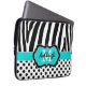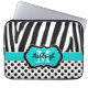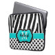 This chic and trendy personalised turquoise blue, black, and white zebra stripes and polka dots laptop sleeve has text boxes for you to add your name and monogram. ****PLEASE email me if you want a LARGER size one made up, as selecting it on your own will cause the design and text boxes to slip. If you need help customising this with your own info, please email niteowlstudio@gmail.com for help.