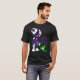 I give wanted to give this a 4 instead of a 5 because these Basic DARK T0shirts run unexpectedly SLIM or Narrow. Which is great if you do not have a potbelly, but I have a paunch. It isn't the shirt's fault that I've got a beer belly. The design and shirt itself is a quality cotton shirt. The color is more of a deep purple, but still a very pretty color. The Basic DARK T-shirts run a bit SLIMMER than the Basic Ts. The neck is a fraction narrower (or seems to be narrower) also. I'm a paunchy middle-aged woman and my neck is 12 inches (31cm) thick and the neckline fell about the same as in the photo of the man, and I had the desire to tug it a bit. So if you're a thick necked man or like loose shirts, be aware these are slimmer shirts. Once I get rid of my lockdown paunch it'll look great. The shirt washed well in cold water with no apparent bleeding. We don't have a dryer, so it hung dry. Did not shrink. Love the colors and the design. The design looks smaller on my shirt than it does on the model on-line. But still, it looks good on the shirt. The printing looks as it does on the model, just the size seems fractionally smaller. Washed garment in cold water, hung dry and design appeared unaffected.