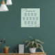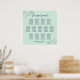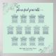 This beautiful 13 table wedding seating chart includes table assignments for 130 guests with 10 seats per table. The design features navy blue text on a light green or neo mint colored background with a lacy script calligraphy title. The corners are decorated with a frilly silver gray faux foil filigree with curls and swirls making it both simple and elegant. Stylish, chic and sophisticated way to help your guests find their seats at your reception.