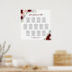 This beautiful 13 table wedding seating chart features a rustic boho chic design with hand painted watercolor roses in shades of burgundy, red, and blush pink, surrounded by eucalyptus leaves and garden greenery. The traditional arrangement has space for 130 names with 10 seats per table. The title is written in elegant script calligraphy, and there is space for the names of the couple and wedding date below. Wonderful way to add beauty and style to your reception while making it easy for your guests to find their seats.