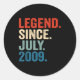 13 Years Old Gifts Legend Since July 2009 13th Bir Classic Round Sticker