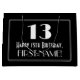 This Roaring Twenties look inspired vintage appearance birthday-themed giftbag design features a large art deco look inspired number "13", the message "Happy 13th Birthday,", a personalized name, and a border pattern consisting of thin lines. The background is colored black. A gift bag like this could be used when wrapping a birthday present or gift being given to somebody who is celebrating their 13th birthday. [~Z0000496]