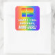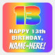 This joyful and vibrant birthday square sticker design features a large number “13” having a colourful rainbow spectrum inspired gradient pattern. It also features the message “HAPPY 13th BIRTHDAY,”, and a customisable recipient name. The background also features a cheerful multicolored rainbow spectrum inspired gradient pattern. Fun, personalised stickers like this might be given as a birthday gift, or used while wrapping gifts, or perhaps used as a birthday party decoration when celebrating somebody’s thirteenth birthday. [~Z0000571]