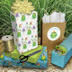 Thirteenth birthday Frog wearing a party had and blowing a blower . A present with the number 13 and cupcakes sit on surrounding lily pads to the birthday frog is sure to have toads of fun.
