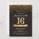 13th Birthday Invitation Black and Gold Glitt6r