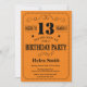 13th Birthday Invitation Black and Orange