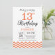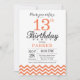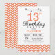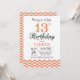 13th Birthday Invitation with Coral Chevron. Black and White. Kids Birthday. Boy or Girl Bday Invite. For further customisation, please click the "Customise it" button and use our design tool to modify this template.