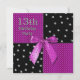 13th Birthday Invitation -Fuchsia/Black Polka Dots