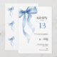 13th Birthday Invitation Teens Blue Bow for Girls