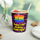 This cheerful and colorful birthday paper cup design features a large number “13” having a rainbow spectrum gradient inspired pattern. It also features the message “Happy 13th Birthday,”, and a custom name. The background features a pattern of pink, purple, and red heart shapes of various sizes. Cheerful, upbeat paper cups like this might be fun to use at a birthday party being held to honor somebody’s 13th birthday. [~Z0000548]