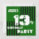 13th Birthday Modern Teen Green Black Stripes V10 Invitation