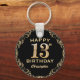 13th Birthday Party Black and Gold Glitter Frame Key Ring