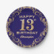13th Birthday Party Navy Blue and Gold Glitter Paper Plate