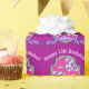 Fun purple and pink princess knight shield with a unicorn head, royal princess crown, a star and your birthday age. Customise with your childs name and age, currently reads, Happy 13th birthday Jenna. Unique graphic art and design by Sarah Trett for www.mylittleeden.com on zazzle.