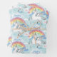 13th Birthday Rainbow Unicorn Blue Clouds Stars Wrapping Paper Sheet