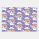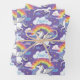 A white unicorn prancing in the clouds underneath a rainbow. Hand lettered "Happy" in the cloud above the "Birthday" in the rainbow. All on a purple background of stars. What thirteen year old doesn't love unicorns.