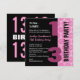 13th Teen Birthday Modern Pink Black Stars G400 Invitation