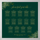 This beautiful wedding seating chart includes table assignments for 140 guests at 14 tables. The simple yet elegant design features gold text on an emerald green colored background with a lacy script calligraphy title. The corners are decorated with a frilly faux foil filigree with curls and swirls. Stylish, chic and sophisticated way to help your guests find their seats at your reception.