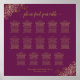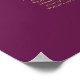 This beautiful wedding seating chart includes table assignments for 140 guests at 14 tables. The simple yet elegant design features gold text on a magenta plum or cassis purple colored background with a lacy script calligraphy title. The corners are decorated with a frilly faux foil filigree with curls and swirls. Stylish, chic and sophisticated way to help your guests find their seats at your reception.