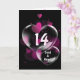 Pink hearts and white translucent heart-shaped bubbles for 14th anniversary on black background.