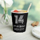 This 1920s/1930s style inspired and vintage look birthday paper cup design features a large art deco inspired appearance number “14”, along with the birthday greeting message “Happy 14th Birthday,” and a personalised name. It also has a black-coloured background. Paper cups like this might be used at a birthday party held in celebration of somebody’s fourteenth birthday. [~Z0000542]