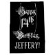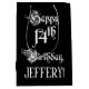 This fancy and formal birthday themed gift bag design features the message “Happy 14th Birthday,” in elegant script style text, on a black coloured background. It also has a customisable recipient name. A birthday themed gift bag like this might be a respectable way to wrap a gift or present being given to celebrate somebody’s fourteenth birthday. [~Z0000557]