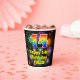 This joyful and fun birthday-themed paper cup design features a large number “14” having a rainbow spectrum gradient inspired pattern. It also features the message “Happy 14th Birthday,”, and an editable name. The background features a vibrant and colourful pattern inspired by the look of bursting celebratory fireworks. Colourful, vibrant paper cups like this might be fun to have at a birthday party being held in celebration of somebody’s 14th birthday. [~Z0000539]