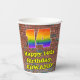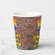 This vibrant and fun urban street art and graffiti themed birthday paper cup design features a large number “14” having a colourful rainbow spectrum gradient inspired pattern. It also features the message “Happy 14th Birthday,”, and a custom name. The background features a brick wall pattern. Vibrant, colourful paper cups like this might be fun to have at a birthday celebration being held to honour somebody’s 14th birthday. [~Z0000543]