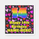 This colourful and cheerful birthday themed paper napkin design features a large number “14” with a rainbow spectrum gradient inspired pattern, along with the message “Happy 14th Birthday,”, and an editable name. The background features a pattern of pink, red, and purple heart shapes. Friendly, fun paper napkins like this might be fun to have at a birthday celebration being held to celebrate somebody’s 14th birthday. [~Z0000550]