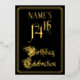 The front of this opulent, fancy, foil fourteenth birthday celebration invitation design features the message “14th Birthday Celebration” in elegant script-style text. It also features an editable name. The background of the front is coloured black by default (although it can be customised to a different colour). The back features personalised details about the event, such as the date, time, location, and any other relevant information. Elegant, luxurious, customised invitations like these might be used to invite guests to a birthday party/celebration being held to honour somebody’s fourteenth birthday. [~Z0000589]