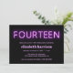 14th Birthday Party Purple Neon Lights Invitation