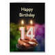 A birthday cup-cake with candles. The candles are made up of the number 14, for a 14th birthday. A birthday card suitable for everybody.