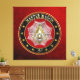 Introducing “Sacred Symbols 3D: Masonic Symbols” Collection by C.7 Design Studio. Here you will find framed/wrapped/stretched canvas fine art prints featuring a symbol of Masonic Square and Compasses (3rd Degree Master Mason) The Square and Compasses (or more correctly a square and a set of compasses joined together) is the single most identifiable symbol of Freemasonry. Freemasonry is a fraternal organisation that arose from obscure origins in the late 16th to early 17th century. Freemasonry now exists in various forms all over the world with a membership estimated at around six million. The fraternity is administratively organised into independant Grand Lodges or sometimes Orientates each of which governs its own jurisdiction which consists of subordinate (or constituent) Lodges. There are also appending bodies which are organisations related to the main branch of Freemasonry but with their own independant administration. The Square and Compass or sometimes known as “The Light” is also representative of the 3rd degree in a Freemason’s level of achievement. Once a mason has reached the 3rd degree he becomes a Master Mason. Both the square and compasses are architect's tools and are used in Masonic ritual as emblems to teach symbolic lessons. Some Lodges and rituals explain these symbols as lessons in conduct. However as Freemasonry is non-dogmatic there is no general interpretation for these symbols (or any Masonic symbol) that is used by Freemasonry as a whole. As measuring instruments the tools represent judgment and discernment. In English speaking jurisdictions the Square and Compasses are often depicted with the letter "G" in the centre. The letter is interpreted to represent different words jurisdiction to jurisdiction. Among the most widely accepted interpretations are that: [G] stands for God and is to remind Masons that God is at the centre of Freemasonry. In this context it can also stand for Great Architect of the Universe (a reference to God). In a different context the letter stands for Geometry described as being the "noblest of sciences" and "the basis upon which the superstructure of Freemasonry is erected."